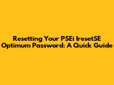Resetting Your PSEi IresetSE Optimum Password: A Quick Guide