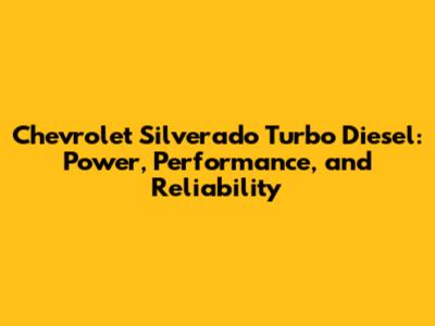 Silverado Turbo Diesel: Power, Performance, And Reliability