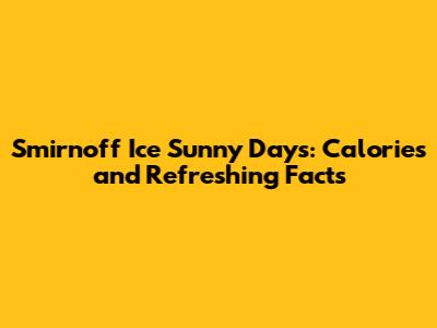 • How many calories are in a Smirnoff Ice Sunny Days? A standard 12-ounce bottle of Smirnoff Ice Sunny Days has approximately 228 calories.