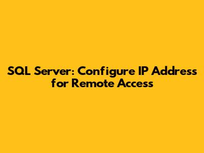 SQL Server: Configure IP Address For Remote Access