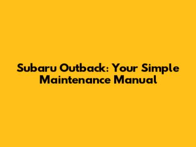 Subaru Outback: Your Simple Maintenance Manual