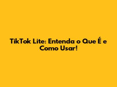 Hey, pessoal! Já ouviram falar do TikTok Lite e estão se perguntando o que é essa versão mais leve do famoso app? 🤔 Então, relaxem! Neste artigo, vamos desmistificar tudo sobre o TikTok Lite, desde o que ele significa até como usá-lo para aproveitar ao máximo seus vídeos favoritos sem consumir toda a sua franquia de dados. 😉