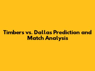 Timbers Vs. Dallas: Match Prediction & Analysis