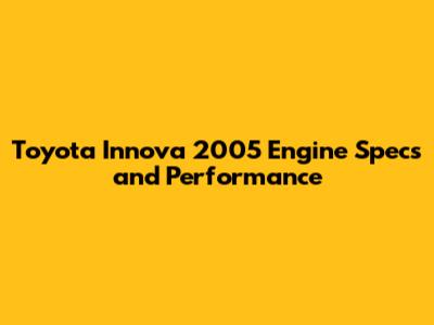 Toyota Innova 2005: Engine Specs & Performance