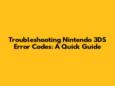 Troubleshooting Nintendo 3DS Error Codes: A Quick Guide