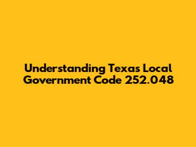 Alright, guys, let's dive into Texas Local Government Code 252.048. This might sound like a super thrilling topic, but if you're involved in local government in Texas, or just curious about how things work, understanding this section of the code is pretty crucial. So, grab your coffee, and let's break it down in a way that's actually easy to understand. We'll cover the basics, why it matters, and what you need to know to navigate it successfully. Let’s get started!