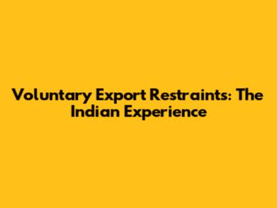 Voluntary Export Restraints: The Indian Experience